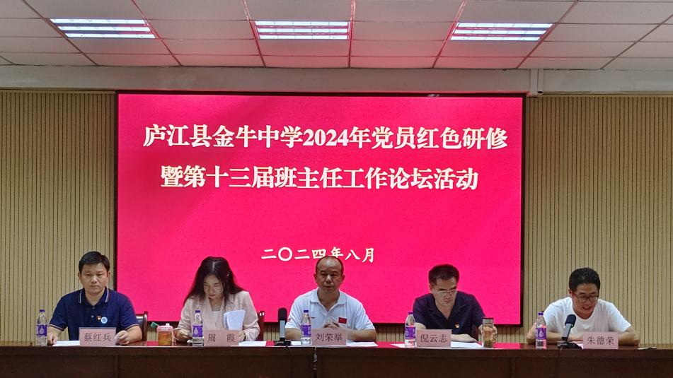 赓续红色基因,铸牢立德树人。8月18日开始庐江金牛中学成功举办为期两天的2024年党员红色研修暨第十三届班主任工作论坛活动。该校党总支书记、校长刘荣举携全体班子成员、党员教师和全体班主任老师参加。