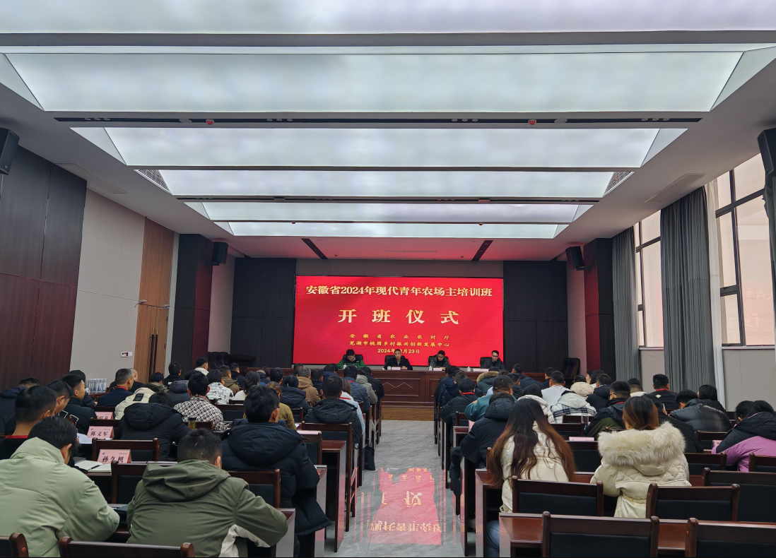 为进一步推动安徽省青年农场主队伍的培育建设与发展,2024年12月23日,由安徽省农业农村厅主办、芜湖市桃园乡村振兴创新发展中心承办的“安徽省2024年现代青年农场主培训班第一期”在芜湖市湾沚区桃园乡村振兴学院三楼紫云英会议厅开班。安徽省农业农村厅科教中心主任崔艺志同志和芜湖市湾沚区农业农村局党组成员、畜牧水产管理服务中心主任万贤斌同志出席了本次开班仪式。来自全省的近80名优秀现代青年农场主参加了本次培训。