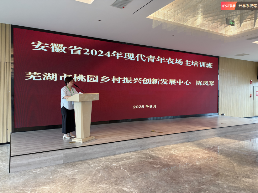 2025年8月,安徽省2024年现代青年农场主第四期培训及结业仪式在合肥市隆重举行。本次培训由安徽省农业农村厅主办,芜湖市桃园乡村振兴创新发展中心承办,历时8个月,分四期系统开展,为全省培养了一批"懂技术、善经营、会管理"的现代农业领军人才。省农业农村厅科教中心主任崔艺志出席仪式并作重要讲话,来自全省各地的100名青年农场主参加结业仪式。
