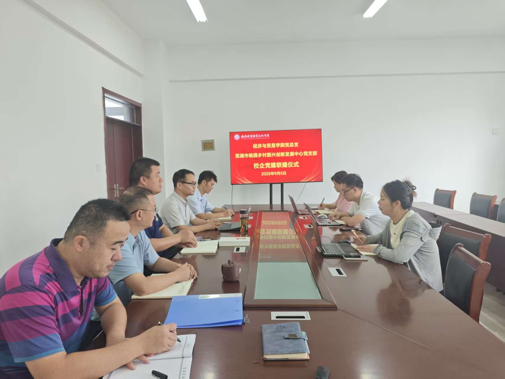 安徽机电职业技术学院经济与贸易学院党总支书记张灿东、院长李健,芜湖市桃园乡村振兴创新发展中心党支部书记杨咸华以及双方单位党员代表参加了此次活动。