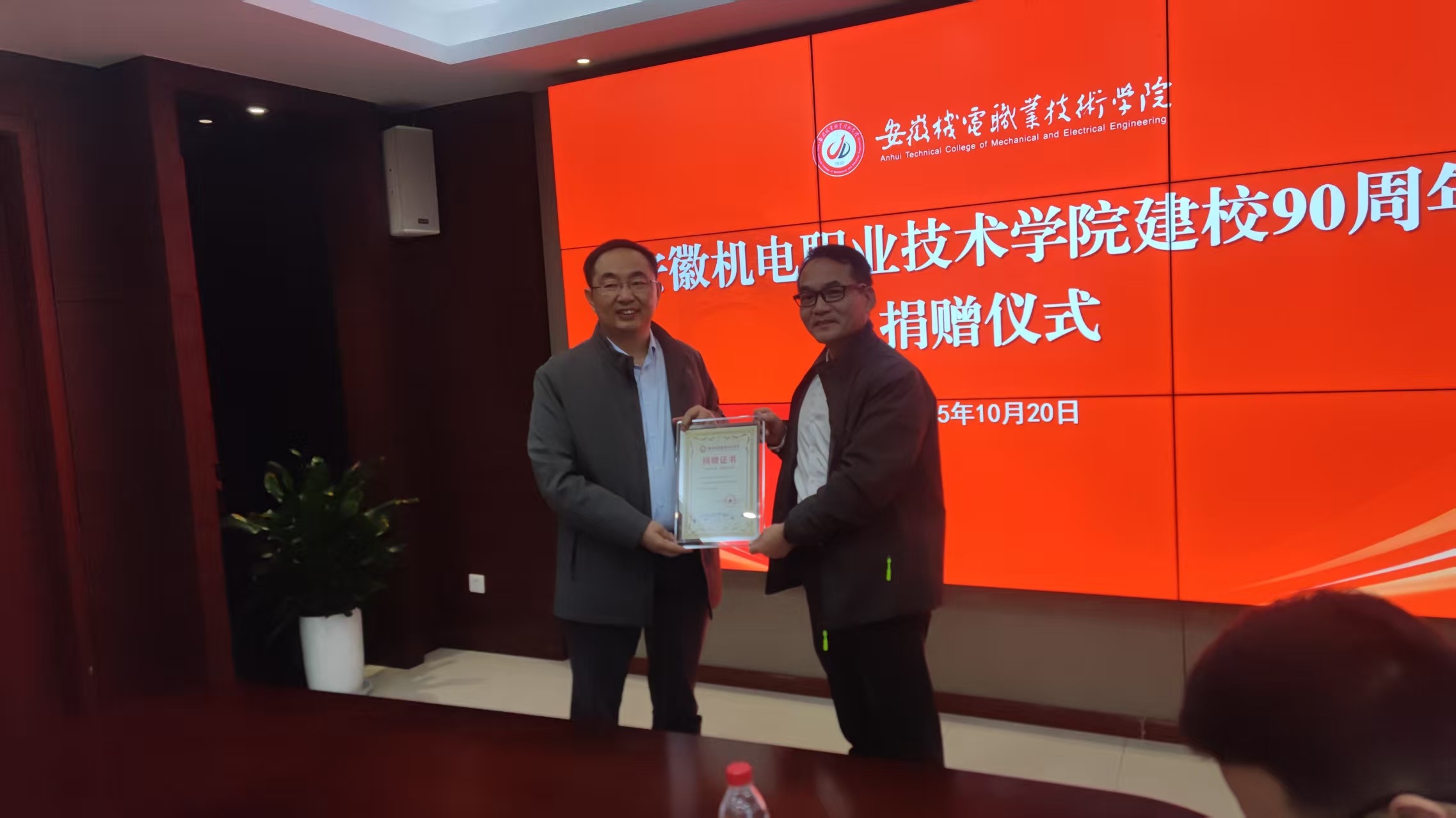 10月20日下午,学校在雨耕楼1109会议室举办建校90周年捐赠仪式。芜湖市桃园乡村振兴创新发展中心作为与安徽机电职业技术学院共建乡村振兴产业学院的战略合作单位,参与向学校九秩华诞捐款。学校党委书记徐春林、党委副书记姜绳及科研处处长郑晓峰、经济与贸易学院院长李健等主要负责人员参会,姜书记主持会议。