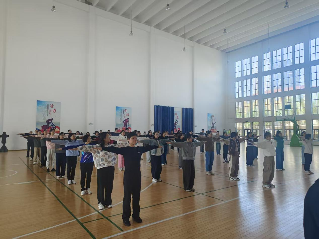 活动聚焦第九套广播体操与国家体育总局审定版八段锦教学,特邀专业教练分日授课。首日开展广播体操培训,教练通过“分解示范+分组练习+纠错指导”模式,逐节讲解动作要领,帮助学员快速掌握规范姿势;次日八段锦教学中,重点结合机关工作特点,详解“调理脾胃须单举”“双手托天理三焦”等招式的养生功效,引导学员感受“形气神”合一的练习要领。