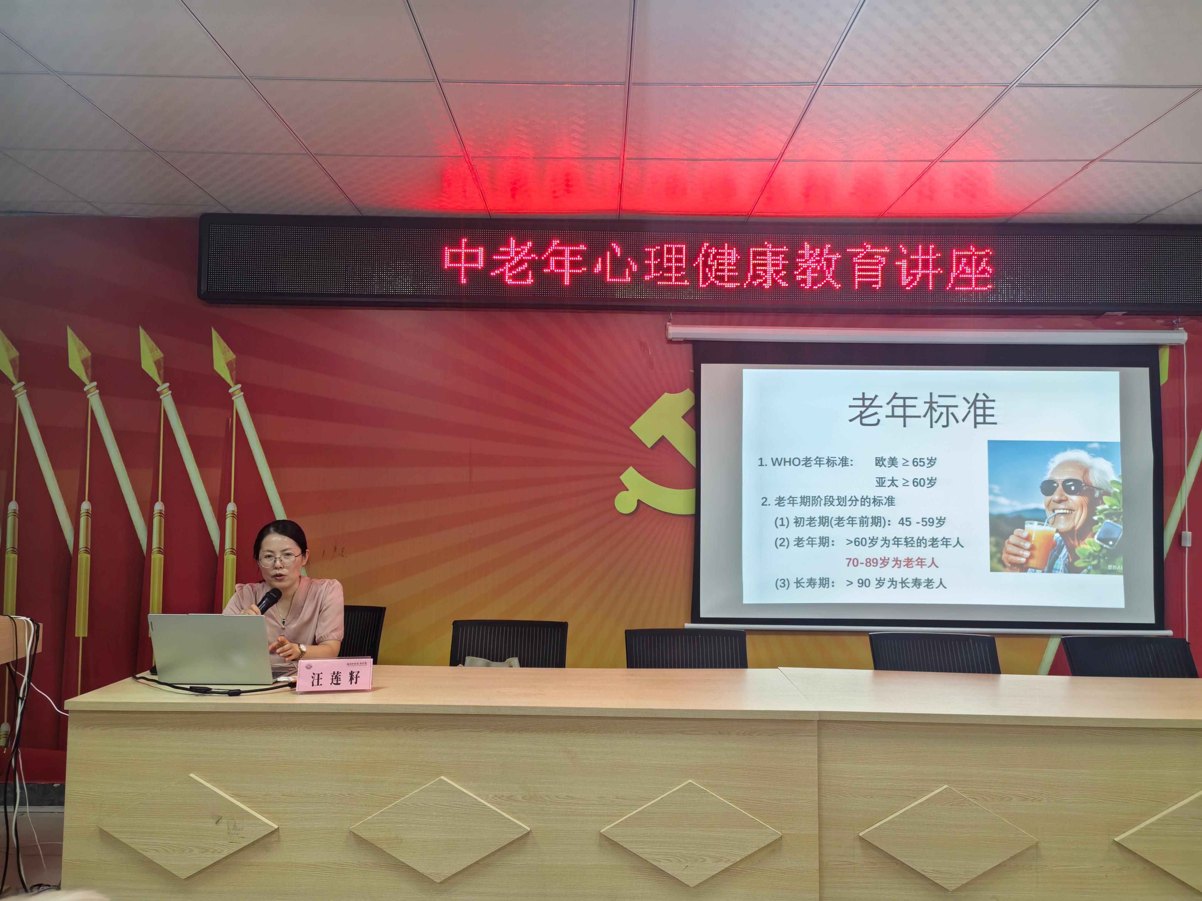 随后,心理学医生汪莲籽为现场老年朋友带来了一场精彩的中老年心理健康教育讲座。讲座中,汪医生结合中老年人的生理和心理特点,围绕情绪调节技巧、人际关系处理方法、日常压力缓解策略等核心内容展开细致讲解,既有专业理论支撑,又有鲜活案例分析,赢得了在场学员的阵阵掌声。学员们纷纷表示,讲座内容贴近生活实际,实用性极强,为今后保持积极乐观的心态、享受幸福晚年生活提供了有力指导。