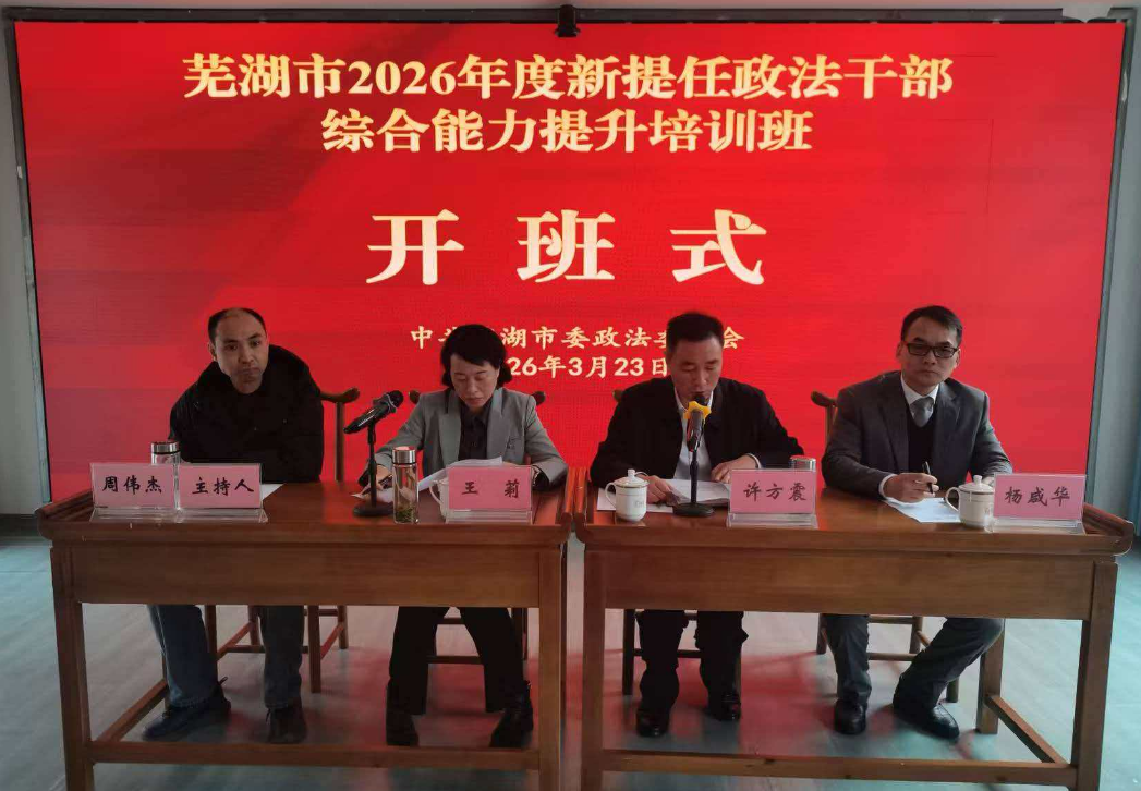 我中心负责人杨咸华博士出席了开班仪式。仪式上,南陵县委常委、政法委书记许方震同志致辞,他代表南陵县委政法委对培训班开班表示祝贺,对全体学员到来表示欢迎。他指出,此次培训既是提升新任政法干部能力素质的重要举措,也是加强市县政法联动、夯实基层治理的务实安排。芜湖市委政法委常务副书记王莉同志作动员讲话。她强调,新提任政法干部肩负着新时代政法工作的重要使命,要旗帜鲜明讲政治,不断提升政治判断力、政治领悟力、政治执行力;要聚焦主责主业,强化法治思维、提升专业能力,在矛盾纠纷化解、平安建设、法治保障等一线担当作为;要严守纪律规矩,永葆清正廉洁政治本色,以过硬作风树立政法干部良好形象。她要求全体学员端正学风、潜心钻研,确保学有所获、学有所成,以更高标准履行岗位职责,为芜湖高质量发展提供坚实政法保障。