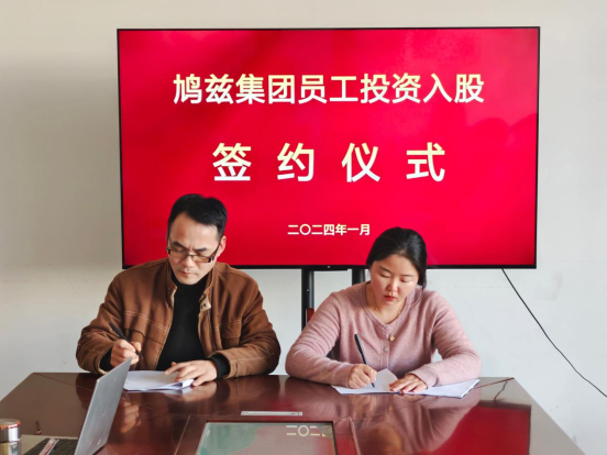 新年伊始,万物向荣。2024年1月12日,安徽鸠兹科技集团有限公司员工投资入股签约仪式在安机电乡村振兴产业学院会议室举行。下属企业员工郭立燕同志光荣签约成为股东。