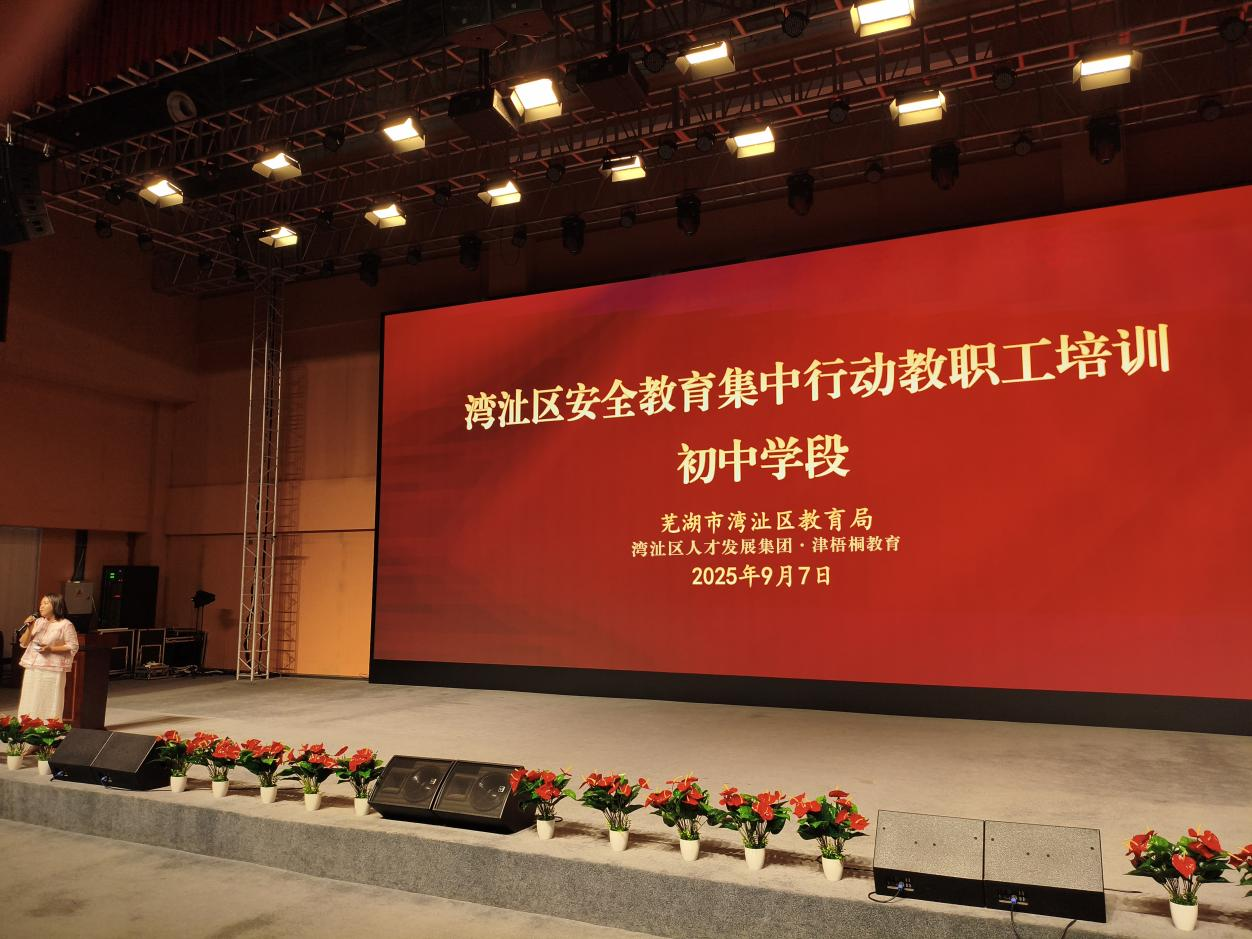 9月7日,芜湖市湾沚区教育局主办、区人才集团下属芜湖津梧桐教育科技有限公司“湾沚区学校安全教育集中行动”培训正式启动。全区公、民办幼儿园、小学和初中共计2456名在职教职工,分批次、分学段参与系统培训与实战演练,全面强化校园安全管理能力,夯实安全防护基础。
