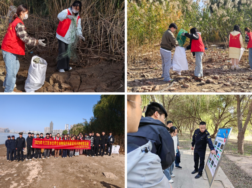 现场通过图文展示、趣味互动等形式,工作人员向同学们生动讲解了长江禁捕的重要意义、相关法律法规以及保护水生生物多样性的紧迫性。活动气氛热烈,学生们积极参与,在轻松活泼的氛围中深刻认识到践行“不捕、不卖、不买、不食”长江野生鱼鲜是每个人应尽的责任。校园活动结束后,部分大学生志愿者还前往长江沿岸,开展废弃渔网渔具清理行动,以实际行动传递“禁渔从我做起”的担当与决心。